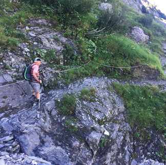 Mit dem Auto fahren Walti und ich bis etwas oberhalb der Kaltenbrunnensäge (Rosenlaui). Von hier aus sind es knapp zwei Stunden bis zur Hütte auf gutem Bergweg. Unterhalb der Hütte hat es einige Stellen, die mit Ketten gesichert sind. Die Hütte ist direkt unterhalb der Engelhörner gelegen, ein Klettergebiet par exellence. Wir sind zum Wandern da, und bestaunen bei herrlichen Wetter einige Kletterer auf verschiedenen Gipfeln.
