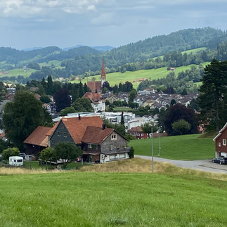 Nach Mosnang verfahren wir uns (fast das einzige Mal diese Woche), finden aber in Lütisburg bei der Thur-Holzbrücke wieder die Route. In Tufertschwil laden wir bei einer Akkustation unsere Akkus auf und essen im Rössli etwas Kleines. Nachher Aufstieg zum höchsten Punkt heute, teils durch schönen Wald nach Wolfensberg und Abfahrt über Degersheim nach Herisau.
